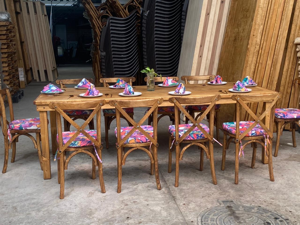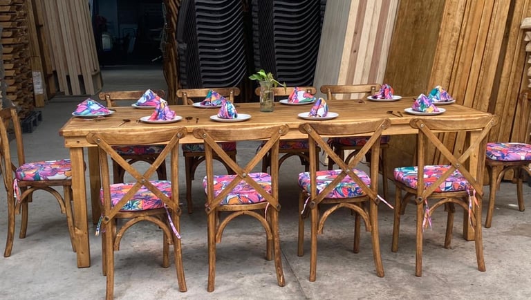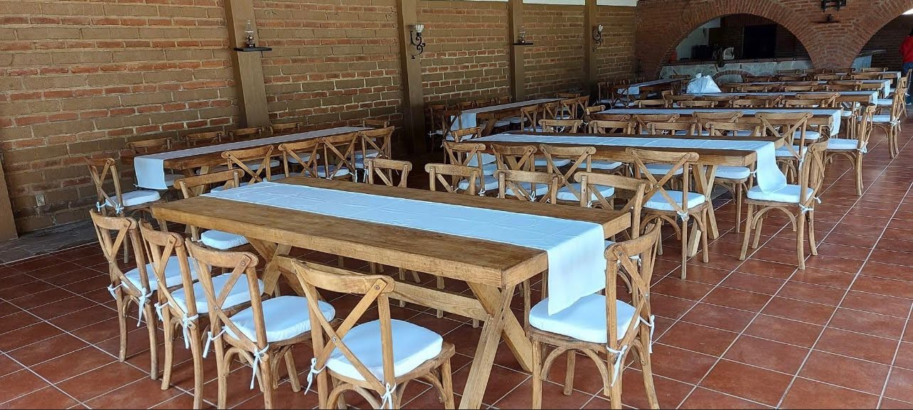 En Maderza Mobiliario, somos especialistas en la fabricación de muebles de madera para eventos. Descubre nuestra colección de sillas Cross back, mesas vintage y tablones rústicos hechos de madera sólida. Creamos piezas resistentes, duraderas y de alta calidad, diseñadas para soportar el uso rudo sin perder su estilo. Envíos seguros a todo México directo de fábrica.